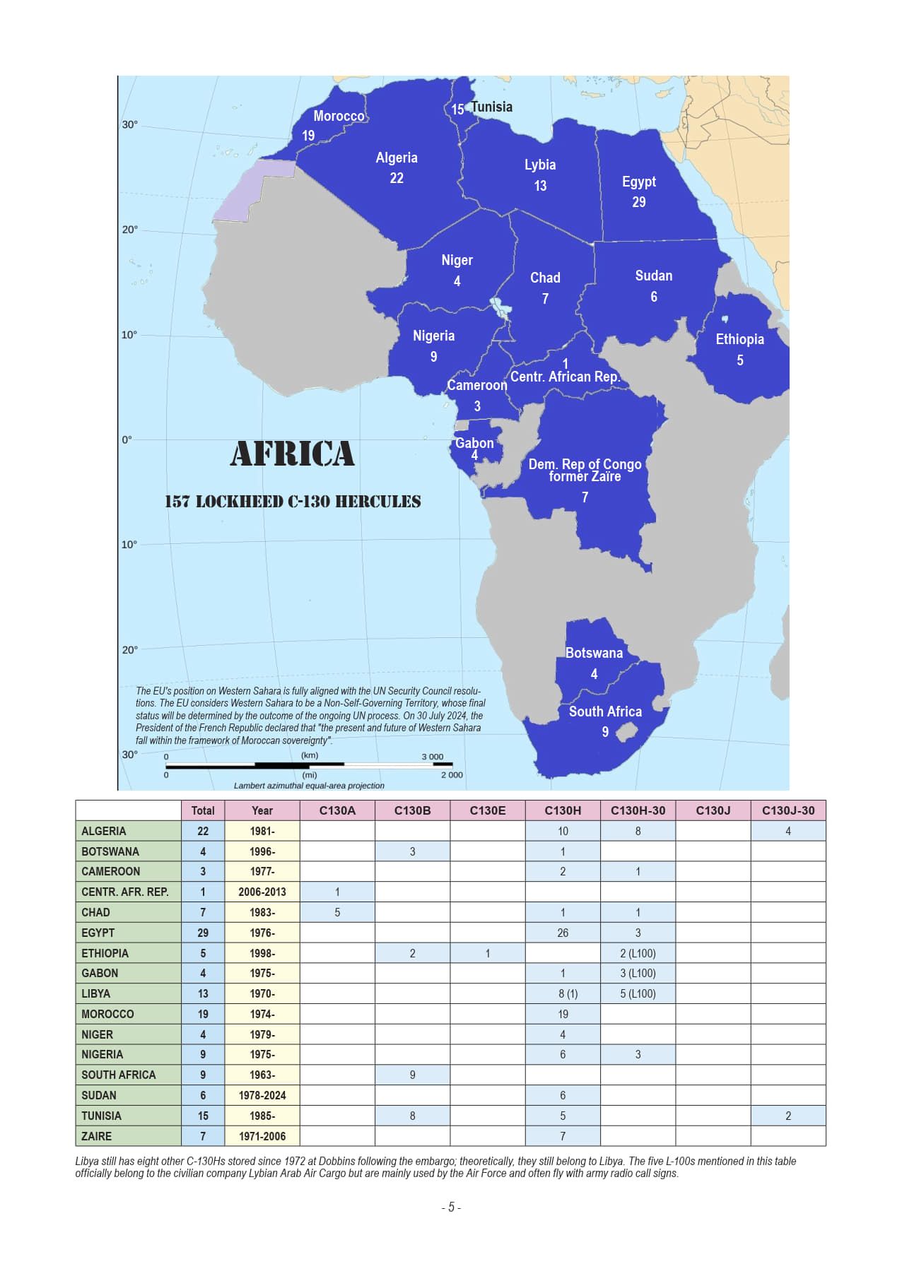 The African continent currently has 54 sovereign states, only 16 of which use – or have used – the C-130 Hercules. Unsurprisingly, the North African countries located around the Mediterranean are all equipped with C-130s and also have the largest fleets. It was also in North Africa that the C-130J-30 Super Hercules made its debut on the African continent: first in Tunisia, then more recently in Algeria, with Egypt set to acquire them soon.