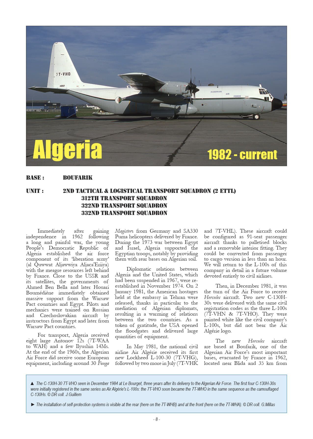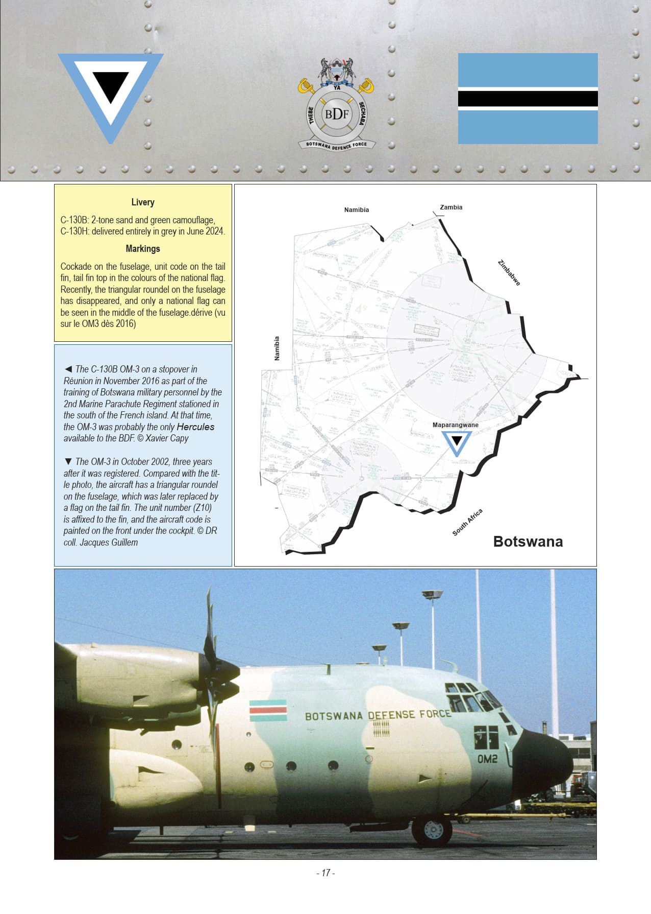 Apart from the Central African Republic, Sudan and Zaire, which no longer have any Hercules aircraft in service, the thirteen other air forces are still believed to have C-130s in operation. However, the following pages show that, in the case of many African countries, information is fragmentary or even non-existent, and it is very difficult to know whether these fleets are actually operational: there are many aircraft stored in varying states of repair or grounded – awaiting overhaul or due to a lack of spare parts, sometimes for long periods due to budgetary concerns – and it is unclear whether they will ever fly again.